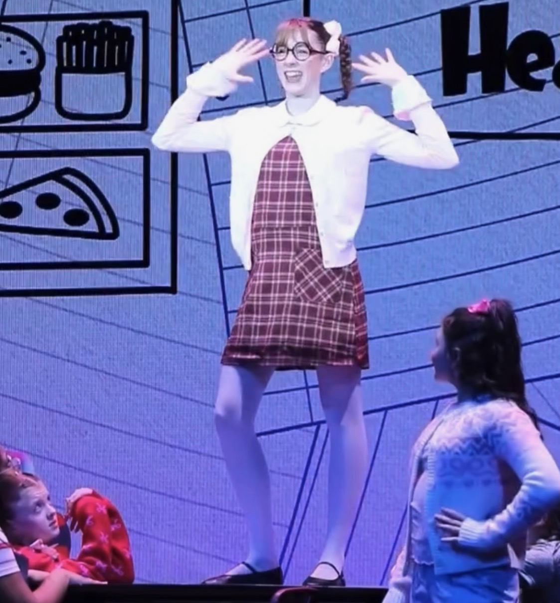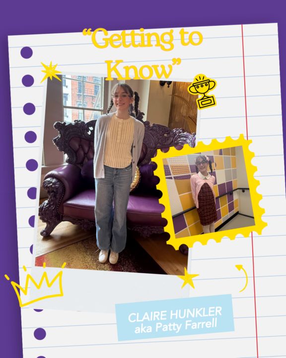 Claire Hunkler (CH): I’m playing Patty Farrell in Diary of a Wimpy Kid: the Musical. Patty in the books is definitely a suck-up to the teachers, and she always has to be the best at everything. And it’s the same way in the movies. The musical is like a collage of a bunch of the different vignettes from throughout the books. You know, because the books are comics. So that’s kind of the style of the show. And it has a bunch of different little stories in it like when Greg is running for treasurer, that’s my big scene, because Patty wants to run for treasurer too, so she can beat him!